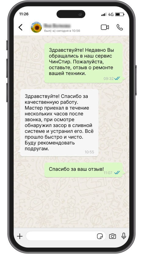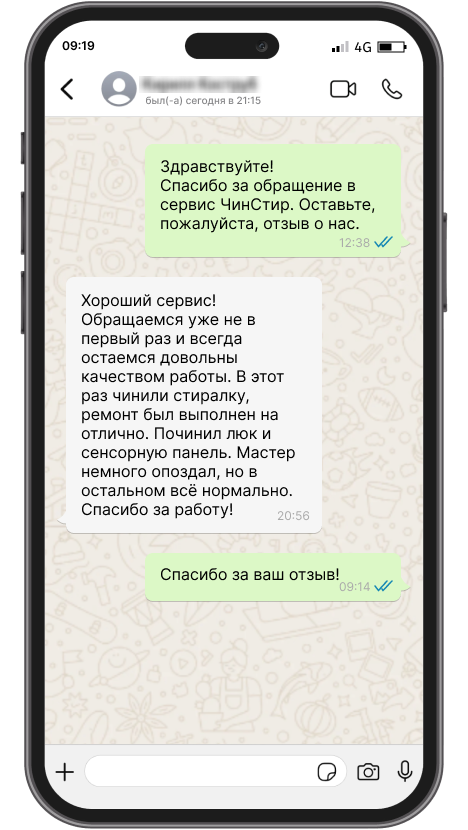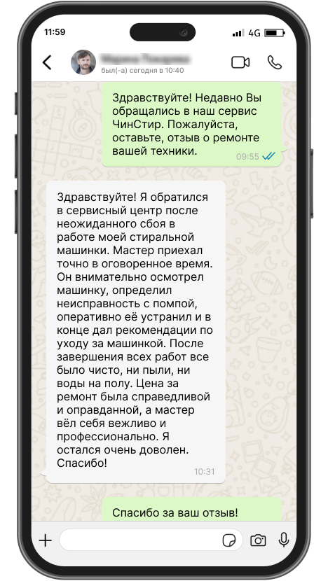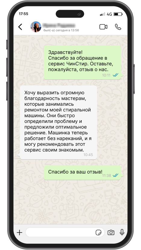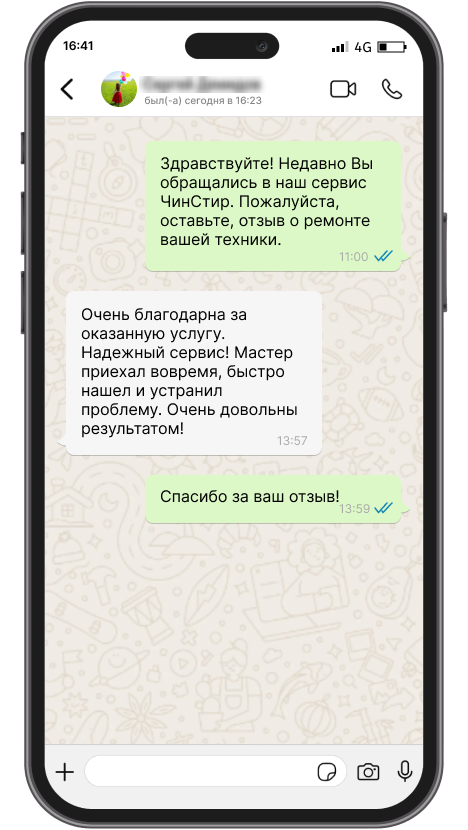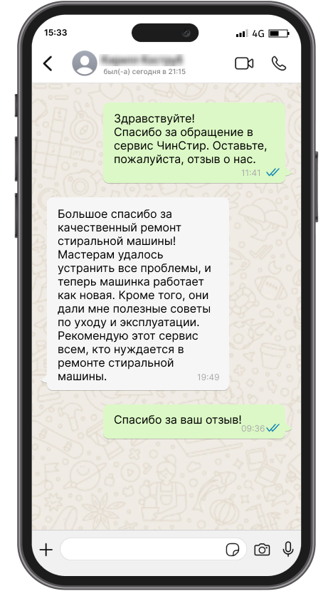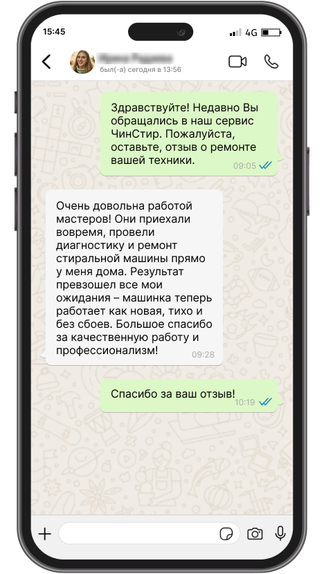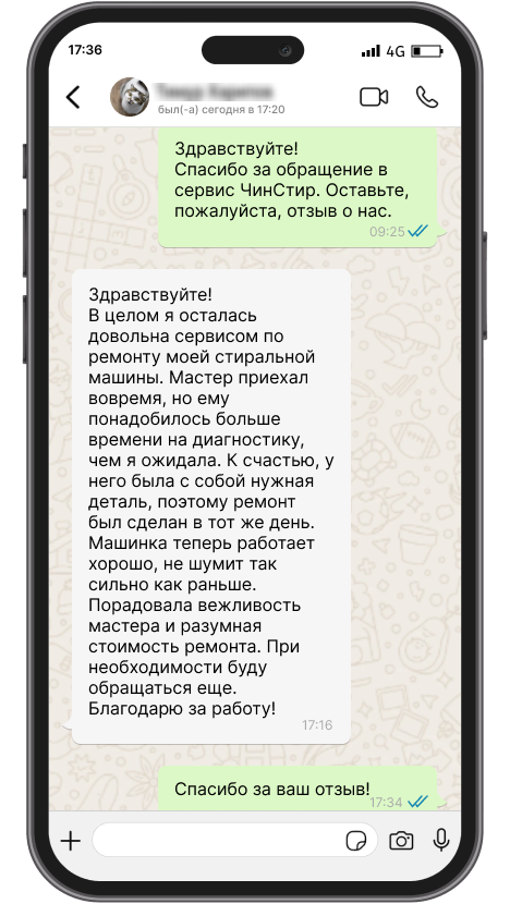 Хочу выразить огромную благодарность мастерам, которые занимались ремонтом моей стиральной машины. Они быстро определили проблему и предложили оптимальное решение. Машинка теперь работает без нареканий, и я могу рекомендовать этот сервис своим знакомым.